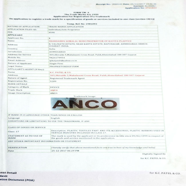 Anco Super Brand Textile parts